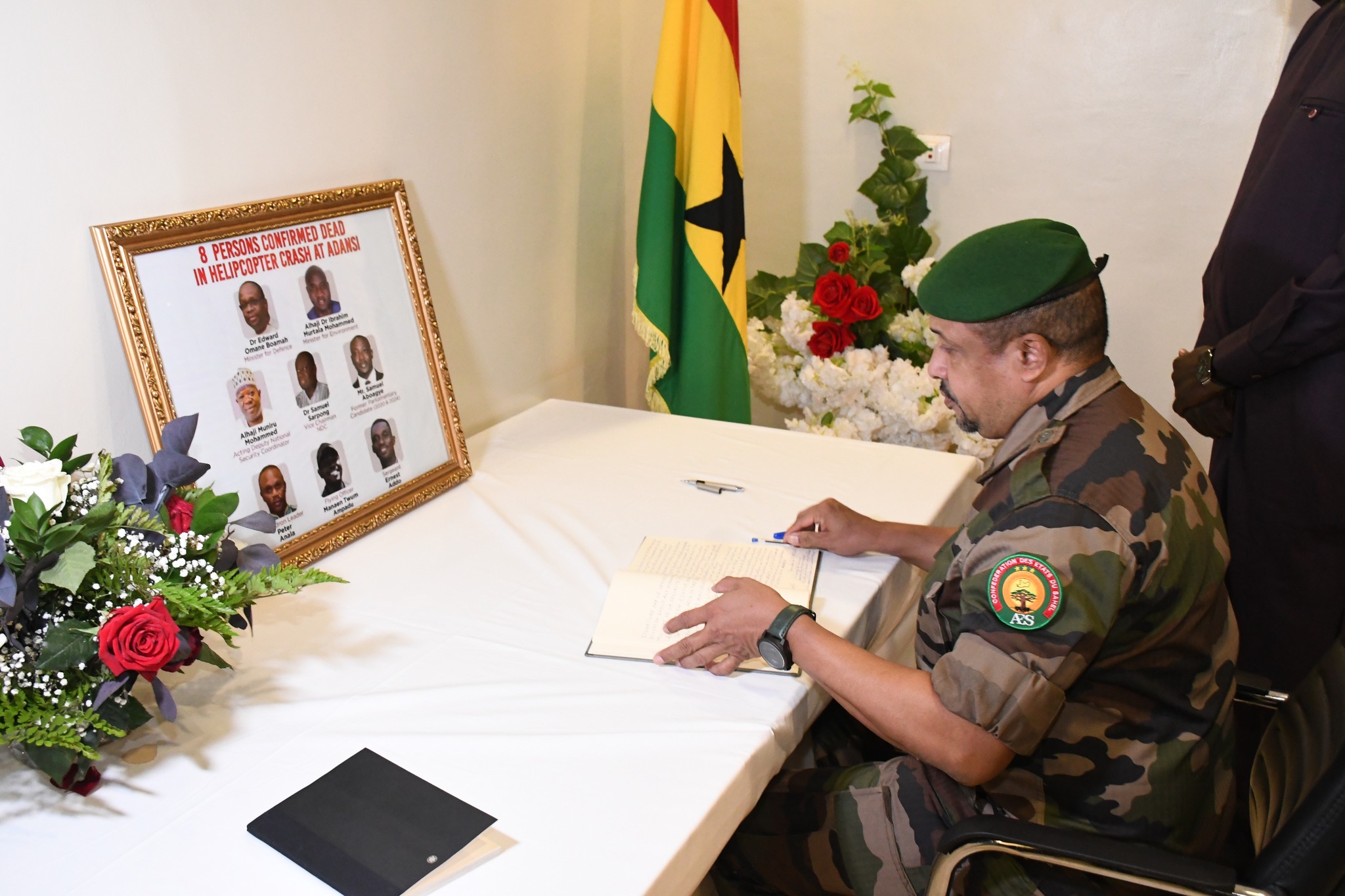 CRASH DE L'HELICOPTERE Z9 DE L'ARMEE DE L'AIR GHANEENNE : Le Ministre de la Sécurité et de la Protection Civile signe le Livre de condoléances