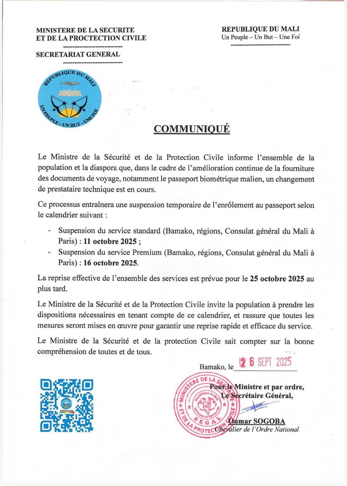 Changement en cours de prestataire technique pour la production du passeport biométrique : Communiqué du Ministère de la Sécurité et de la Protection Civile